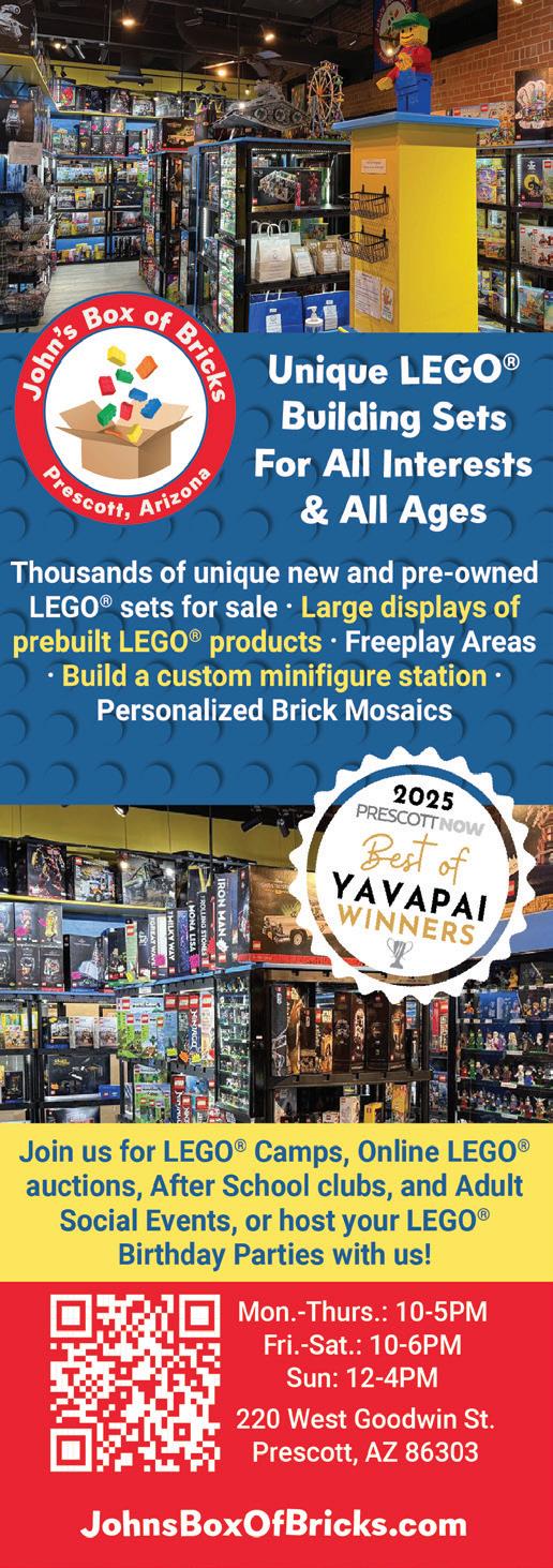 Prescott’s Independence Day event will take place on July 4 at Watson Lake. Free general admission and free parking. Fireworks will begin at 9 p.m. There will be live music, a gamezone, food trucks, picnicstyle grass seating and optional paid add-ons including an activity zone with inflatable water slides, face painting and photo booth. A VIP experience area will also be available with reserved front-row fireworks seating. See website for details and for purchasing tickets for the optional add-ons and VIP area. www.prescottts4th.com