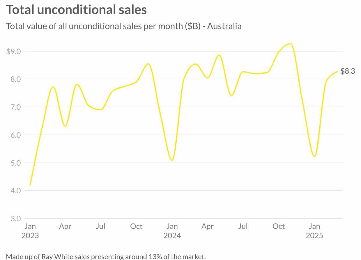 Ray White Group’s sales performance strengthened in March, with unconditional sales reaching $8.3 billion. This demonstrates continued momentum following the seasonal recovery from January’s results, signalling robust market activity as the first quarter concludes.