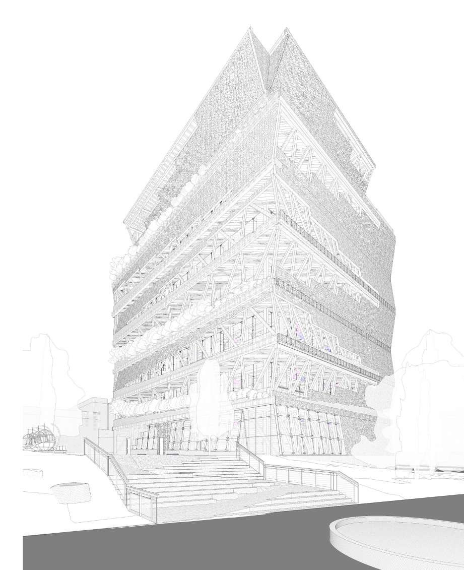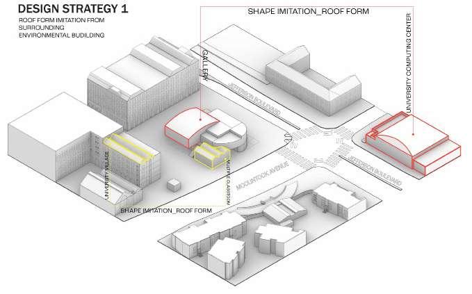 To achieve a ideal goal, the project employs two main design strategies: first, a mimic of the surrounding buildings to blend in with the existing campus context and second, the use of graphic design to create an engaging and dynamic site.