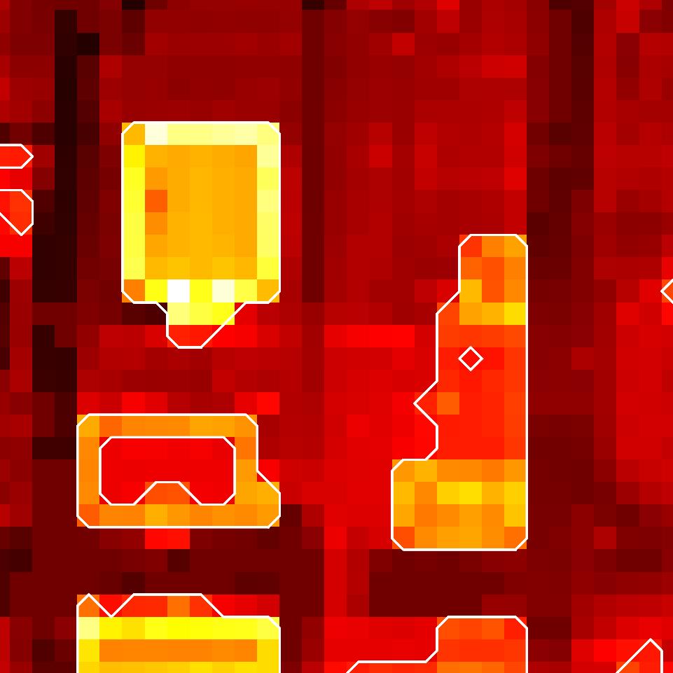 Figure 24: A snapshot of a CA fire spread simulation underway. We first tested the CA on a randomly generated grey scale map.