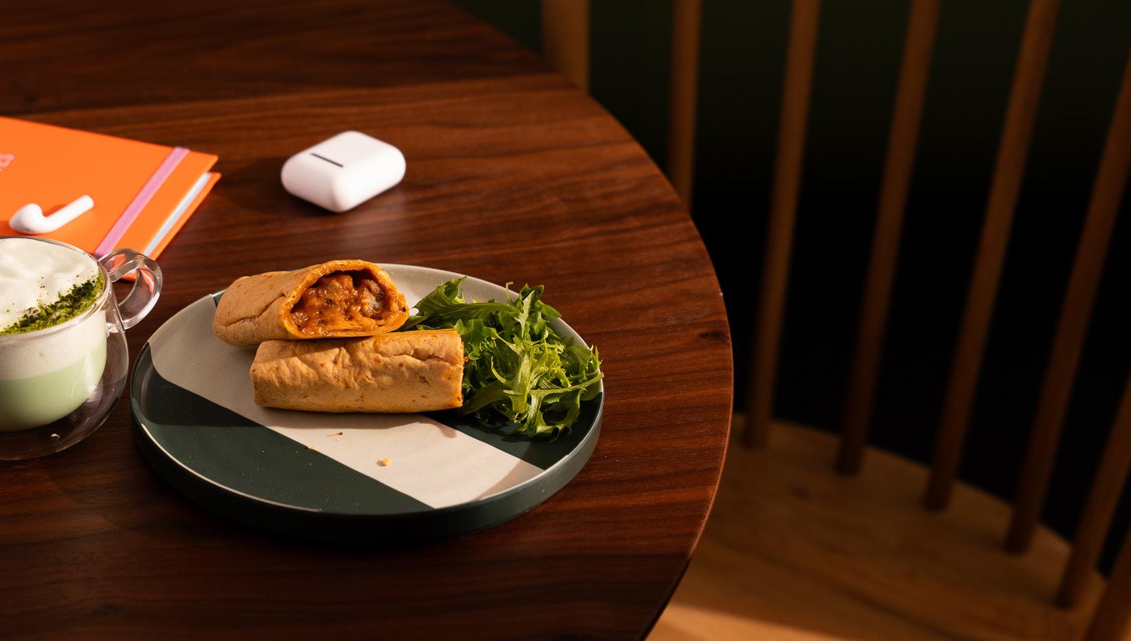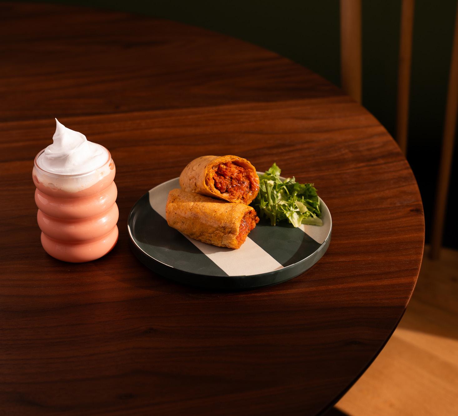 Mozzarella and Pizza sauce with roasted tomatoes in a tortilla wrap.