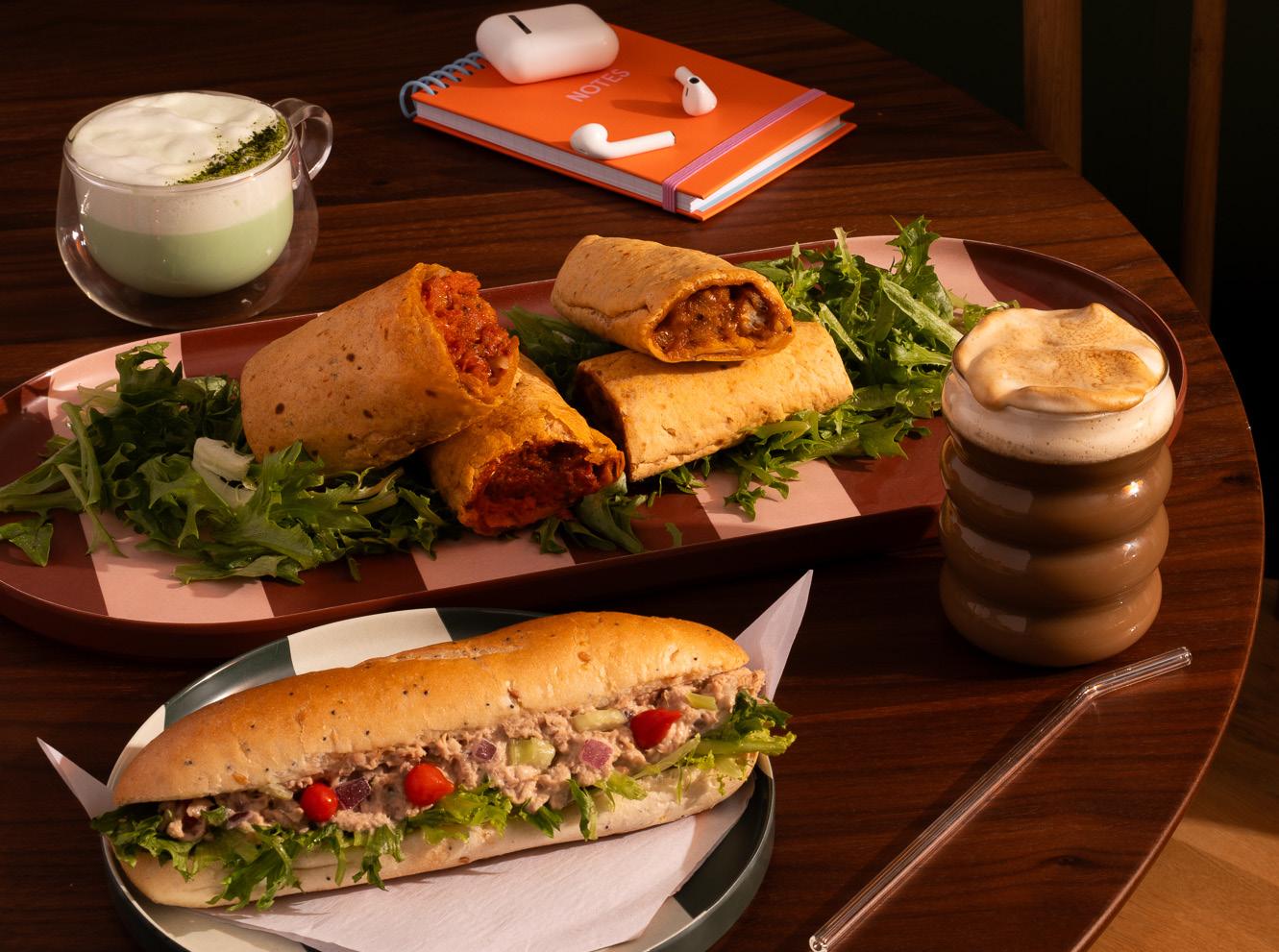 Herby green falafel, chickpea dip, mixed beans with lime, corriander and lettuce.