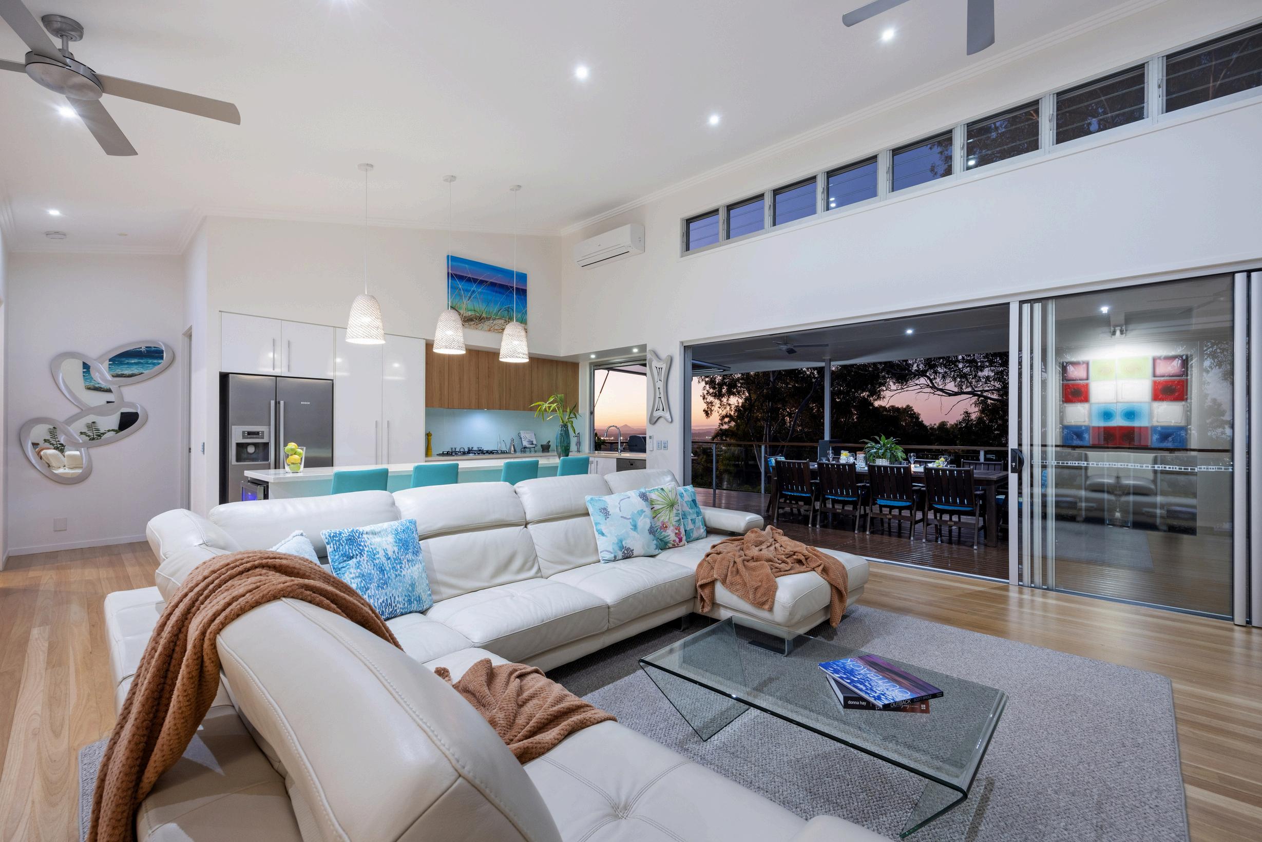 Expansiveopenplanlivingareasaredefinitelya highlightofthehomeandopenontoadeck whereyoucancapturebeautifulbreezesand panoramicviewsofeithertheGlasshouse Mountainsortheocean