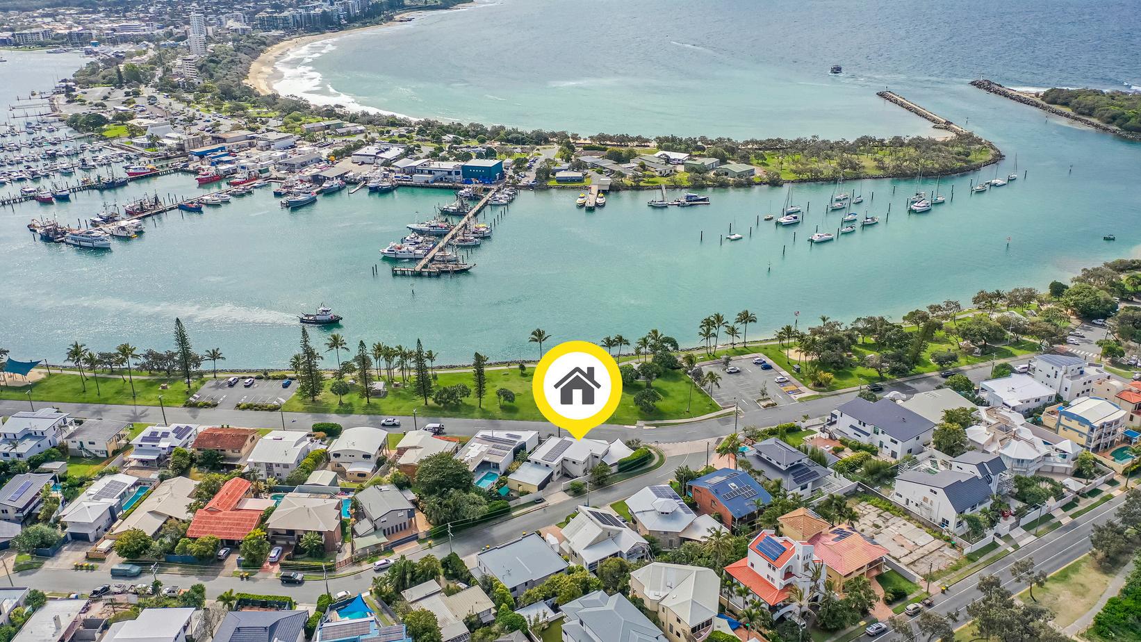Located in the high y sought-after Tarwarri Crescent, this street offers a rare combination of deep water access and the convenience of being just a short stroll to the vibrant Mooloolaba entertainment precinct and its stunning surf beaches Residents here enjoy a prime location that s truly special - it's a neighborhood known for ts charm and exclusivity. The home's contemporary and modern design is complemented by a thoughtful floor plan that max mizes comfort and versatility With a master bedroom on both levels, this home is perfect for those who appreciate the option of single- evel living
