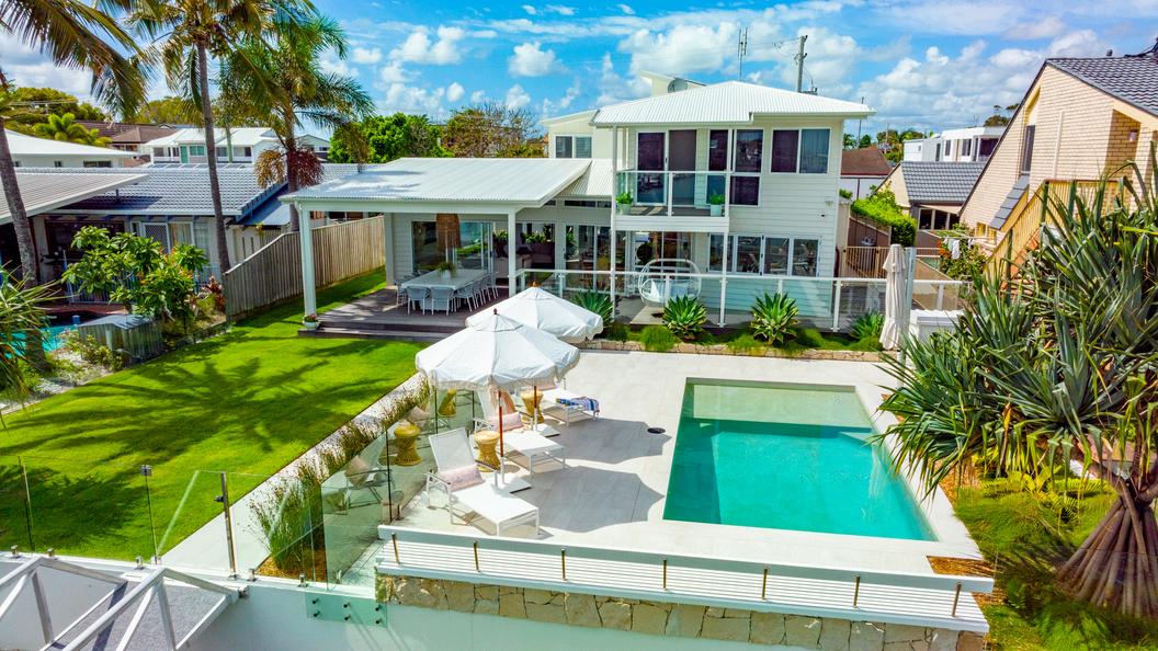 Discover an amazing coastal sanctuary at this uxurious five bedroom, five bathroom north-facing residence on exclusive Island Court, Minyama Perfectly situated on a large waterfront block, this arch tectural home offers unparalleled lifestyle and space, blending sophisticated design with relaxed, beachside charm Positioned within a short distance to pristine beaches, local shops, and dining options, this property offers the ultimate in coastal living with a touch of luxury Whether you're looking to entertain or