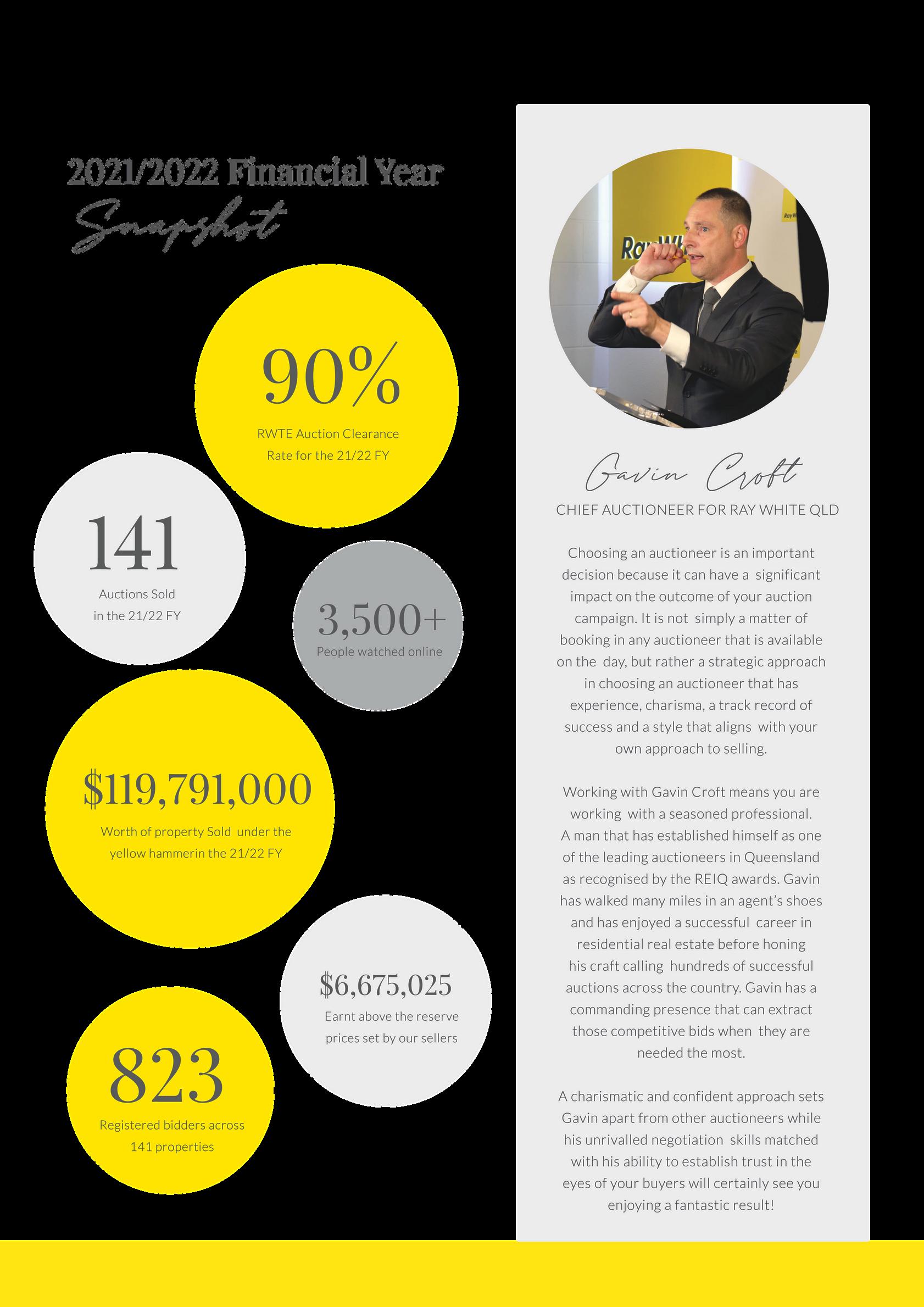 Working with Gavin Croft means you are working with a seasoned professional A man that has established himself as one of the leading auctioneers in Queensland as recognised by the REIQ awards Gavin has walked many miles in an agent’s shoes and has enjoyed a successful career in residential real estate before honing his craft calling hundreds of successful auctions across the country Gavin has a commanding presence that can extract those competitive bids when they are needed the most