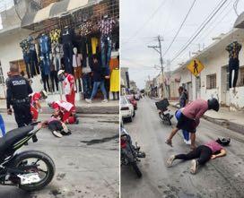 Joven mujer resultó con severas lesiones luego de perder el control de su motocicleta y derrapar mientras se desplazaba sobre la calle