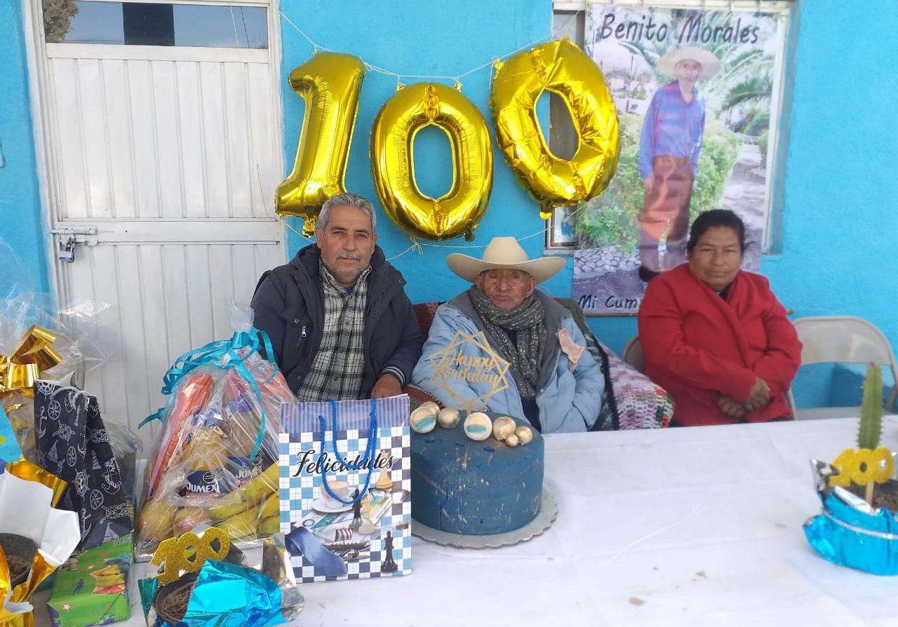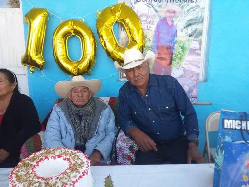 El pasado fin de semana el señor Benito Morales cumplió 100 años de vida; rodeado de familiares y amigos en su domicilio particular de El Blanco, municipio de Cedral, S.L.P. Le enviamos un fraternal abrazo y admiramos que haya alcanzado estos 100 años que, sin duda, le han dejado grandes enseñanzas pero sobretodo lucidez y cariño para todos los que lo rodean. Felicidades!!