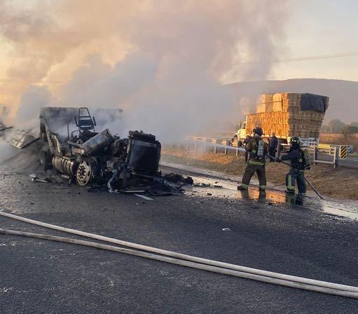 SE INCENDIA TRAILER EN LA CARRETERA 57 LAMENTABLEMENTE EL CONDUCTOR PERDIÓ LA VIDA