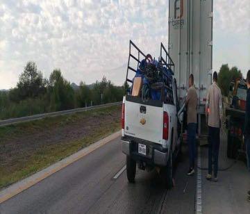 registró un aparatoso choque de una camioneta pick up, color blanco con placas americanas, contra la parte trasera de un tráiler, quedan -