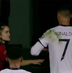 El astro portugués del Manchester United volvió a rechazar un acercamiento de personas que lo admiran, en esta ocasión sucedió al medio tiempo del duelo ante el