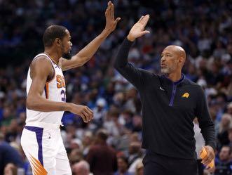 Con 37 puntos y una canasta gana- dora, Kevin Durant comandó el triunfo de los Phoenix Suns 130126 frente a los Dallas Mavericks de su ex socio Kyrie Irving. En Dallas, Kevin Durant fue la gran fgu-