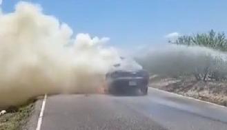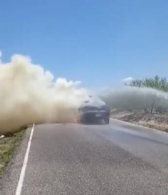 En el Cerro de Dolores perteneciente a Cedral, un automóvil se incendió mientras circulaba sobre la carretera, afortunadamente los ocupantes salieron a tiempo del vehículo y se pusieron a salvo.