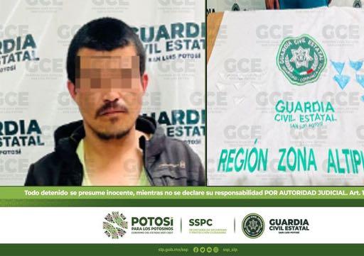 Matehuala, S.L.P.- Un presunto distribuidor de droga en el municipio de Matehuala y perteneciente a un grupo delictivo, fue detenido por elementos de la Guardia Civil Estatal. Como parte de los constantes operativos de seguridad y prevención implementados dentro del plan estratégico de seguridad en el combate frontal contra la delincuencia organizada y el narcomenudeo en el Altiplano, se logró la detención del presunto en la colonia Luis N. Morones. Los elementos estata -