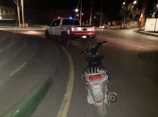 Tres personas, dos adultos y un menor de edad resultaron lesionados al derrapar la motocicleta en la que viajaban sobre carretera a Villa de La Paz, a la altura de la Glorieta fundadores.