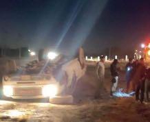 Aparatosa volcadura de una camioneta se registró al caer la noche en el kilómetro 22 de la carretera Cedral Vanegas.