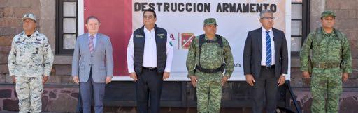 Derivado de la colaboración y coordinación de esfuerzos para la ejecución de la estrategia de seguridad emprendida por el Gobernador de San Luis Potosí, Ricardo Gallardo Cardona, que busca preservar la paz y la seguridad en la entidad, la Secretaría de la Defensa Nacional (Sedena) a través del 40º batallón de infantería, procedió este lunes con la destrucción de 473 armas de fuego decomisadas durante distintos operativos de vigilancia en territorio potosino.
