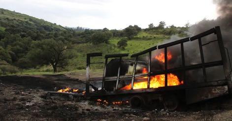 ser incinerados. Es importante destacar que en esta zona se encuentran comúnmente involucradas las actividades ilícitas del grupo de “Los Ro- jos”, quienes frecuen- temente se enfrentan a las autodefensas locales y grupos del cri- men local, por lo que no se ha descartado que podría haberse tratado de un ataque directo o ajuste de cuentas.