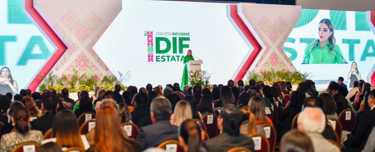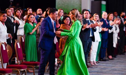 Acompañada del Gobernador de San Luis Potosí, Ricardo Gallar do Cardona, ante un auditorio de más de mil personas en el Centro de Convenciones de San Luis Po tosí, la presidenta honoraria de la loable institución reconoció el so porte interinstitucional y el com promiso del Gobierno del cambio con el DIF Estatal, al sumar esfuer zos para brindar una mejor calidad de vida a las y los potosinos de los 58 municipios en desventaja so cial.