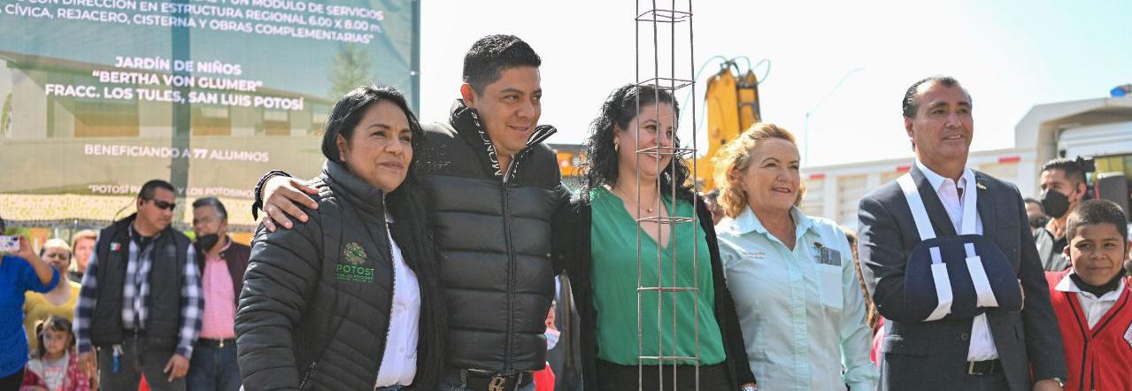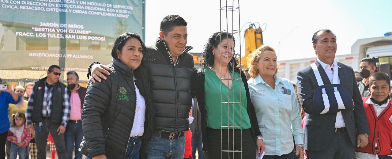 El Gobierno del cambio que en cabeza el Mandatario Estatal Ri cardo Gallardo Cardona, cumple su palabra y vuelve realidad otro sueño, al arrancar la construcción del nuevo Jardín de Niños Bertha Von Glumer en el fraccionamien to Los Tules de la capital potosina, tras 24 largos años de abandono de anteriores gobiernos, con una inversión de más de 7.7 millones de pesos que transformará, el hacinamiento en cuartos que no cumplían con los estándares, en modernas instalaciones para una educación digna y de calidad Hace aproximadamente seis años, el ex alcalde Ricardo Ga llardo Juárez, hizo las gestiones para la donación del espacio que ocupa este jardín de niños y hoy, el Gobernador Ricardo Gallardo Cardona, a través del Instituto Es tatal de Infraestructura Física Edu cativa (IEIFE), inicia la construc ción de cuatro aulas didácticas y un módulo de servicios sanitarios, así como mobiliario, cisterna, reja