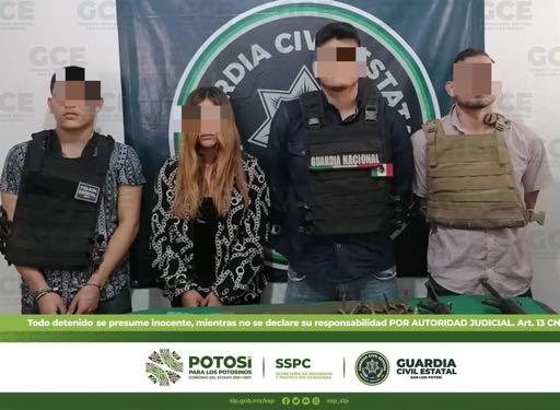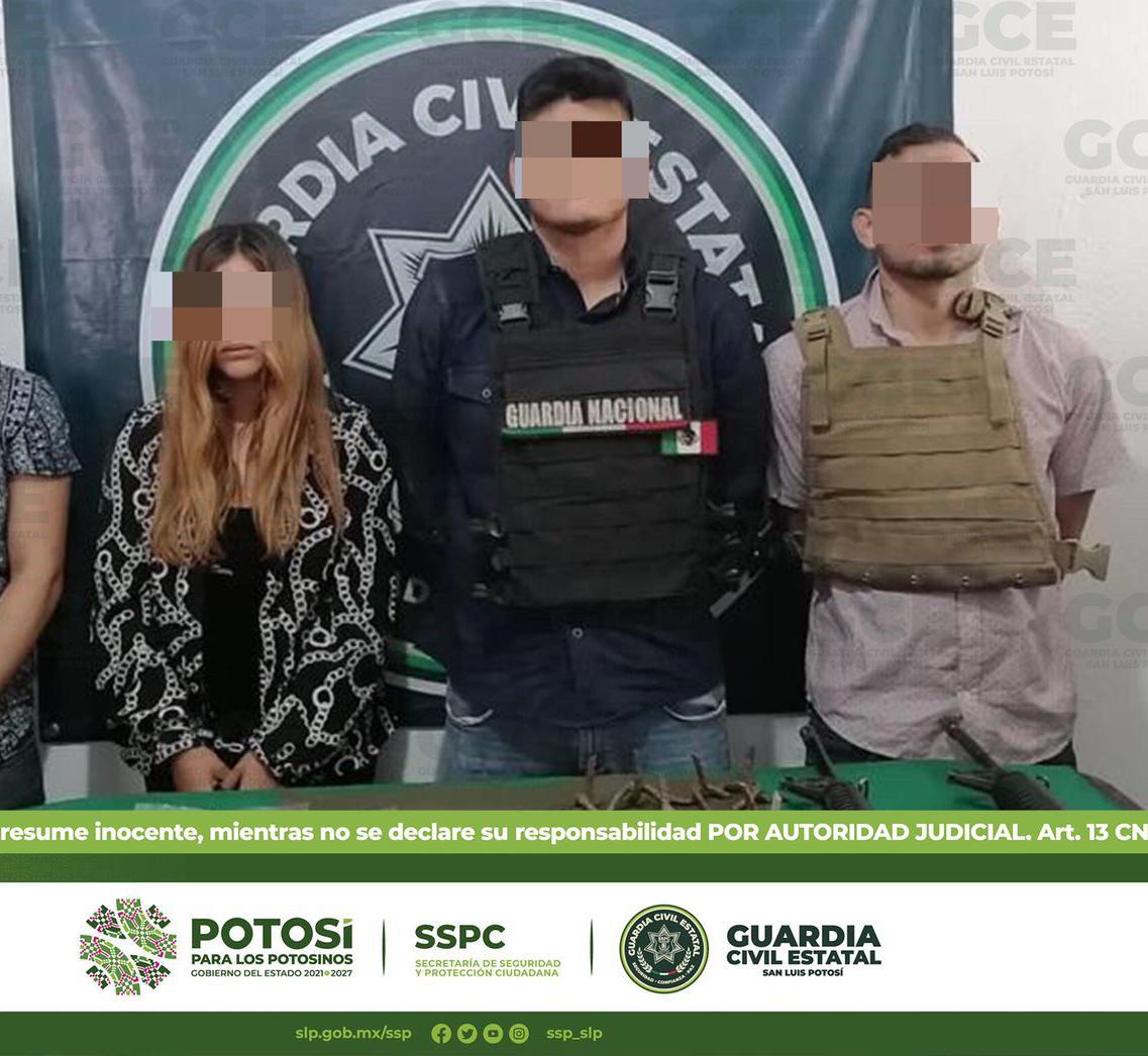 En una ac ción operativa a cargo de agentes de la Guardia Ci vil Estatal en esta región y como parte de los trabajos de inteligencia de la institu ción para paci car la Entidad y reconstruir la paz social, se informa la desarticulación de una célula delincuencial; a quienes se les aseguró droga, armas largas, chale cos balísticos y artefactos conocidos como “poncha Agentesllantas”. de la corporación estatal desarrollaban tareas de prevención y seguridad en la localidad de Tamba ca en el citado Municipio, teniendo contacto con los ocupantes de una camione ta en color blanco, cuyo con ductor imprime velocidad con la intención de darse a la fuga al notar la presencia de las unidades policiales. Los o ciales de la Guardia Civil Estatal se percatan que en el interior de la unidad viajaban tres hombres y una mujer, tres de ellos portaban chalecos anti balas e iban ar mados aunque no se produ jeron disparos. Tras una ligera persecución nalmente los presuntos de lincuentes son sometidos; tres hombres originarios de Tamaulipas y una mujer originaria de Rascón SLP presumiblemente traían lo *01siguiente:arma de fuego tipo ca rabina AR 15 sin marca en color negro con 1 cargador abastecido con 29 cartu chos calibre 223. *01 arma de fuego tipo cara bina AR15 sin marca en co lor negro 01 cargador abas tecido con 29 cartuchos.