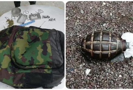 cubrieron que tenían en su poder una caja que contenía cinco papeles en forma de cilindro, así como un contenedor con resi duos de mariguana. Al revisar una de las mochilas que porta ban los jóvenes, los ofciales descubrie ron una granada de fragmentación. El dueño de la mochila