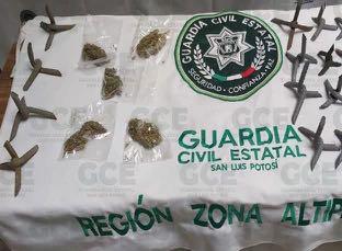 Agentes de la Guardia Civil Estatal lograron asegurar droga y artefactos metáli cos utilizados por presuntos grupos criminales, conoci dos como “poncha llantas”, en el interior de una camio neta abandonada y con re porte de robo, derivado de los operativos disuasivos del delito en la región Altiplano. Dentro de los patrullajes preventivos implementados en la avenida de las Torres y la calle de Negrete, fue ubi cada una camioneta Ren ault, tipo Duster, color blan co, con placas del Estado de México; estaba en aparente abandono, por ello proce dieron consultar su estatus en la base de datos de Plata forma México.
