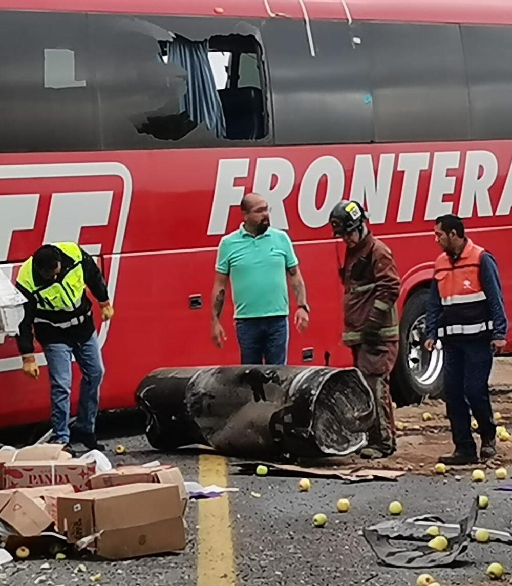 San Luis Potosí. – Tres auto buses y un tráiler protagoni zan un desastroso accidente en la carretera a Zacatecas a la altura del Libramiento Norte en el km 22 por la co munidad de Las Moras. Uno de los autobuses transpor taba migrantes procedentes de Cuba, Ecuador y Nicara gua.