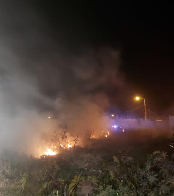 Corporaciones de auxilio y de rescate sofocaron un incendio de maleza dentro de un predio ubicado en avenida de las Torres entre Río Grijalva y Simón Bolivar, al poniente de la ciudad.