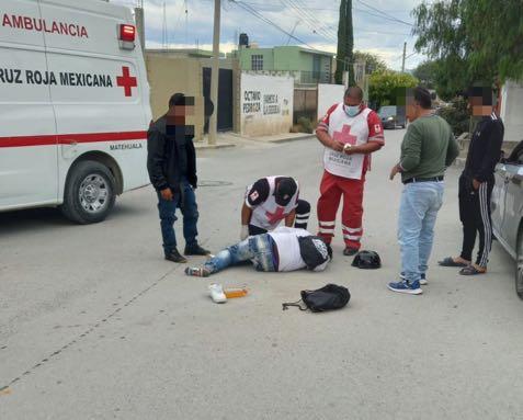 Con saldo un masculino lesionado terminó el en contronazo entre un moto ciclista y un automóvil en concurrido cruce de la colo nia Olivar de las Animas.