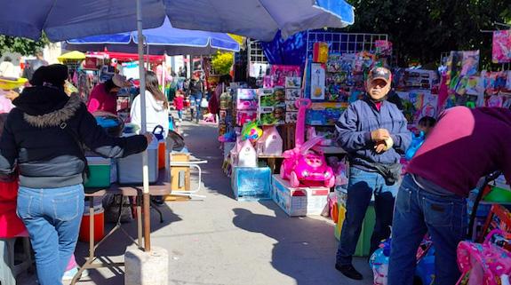 En un recorrido realizado por este sector se pudo apreciar en la explanada de la Plaza Juárez que se colocaron diversos puestos, los cuales tenían a la venta desde juguetes, ropa y artículos relacionados a los
