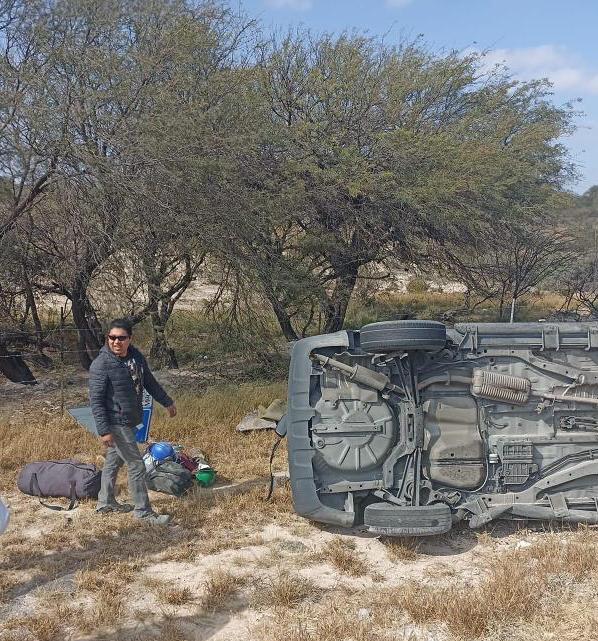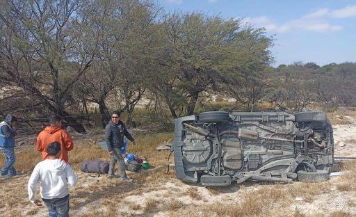 Varias personas lesionadas y costosas pérdidas materiales fue el saldo que dejó la volcadura de un vehículo sobre la carretera 57 entronque con carretera 61 a Cedral.