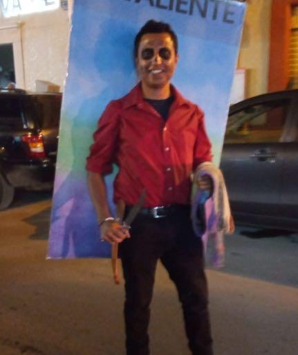 La calaca muy sonriente transitaba por Hidalgo y se emocionó o al ver que todo era señalado y la gente le gritaba: La pavimentó Gallardo.