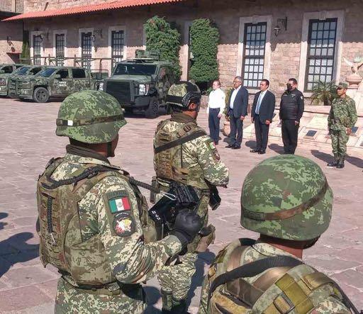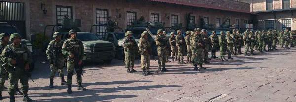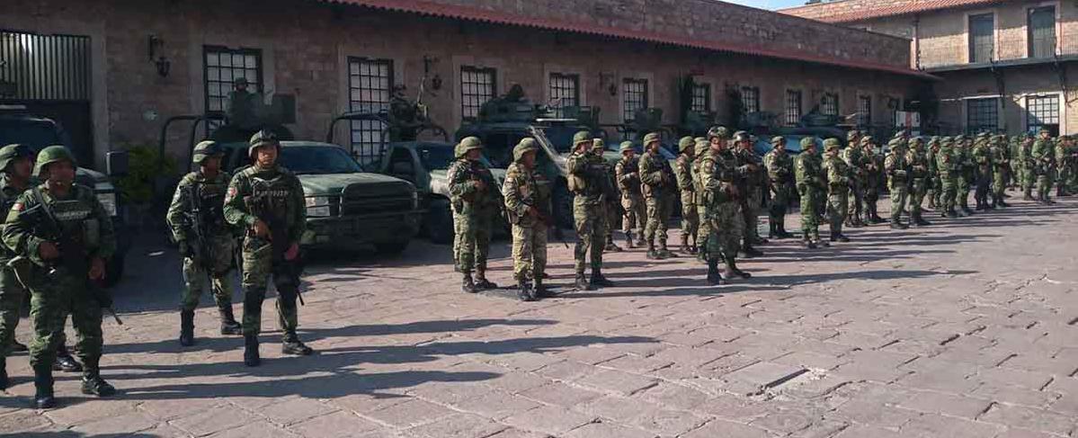 “Se da a conocer a través del ejército Mexicano, que 350 elementos ya se encuentran en SLP, que serán distribuidos en la zona conurbada para po der hacer frente a delitos de alto impacto(...) Vienen en ca mino casi 500, 497 elementos que esta semana arribarán que son entre ellos Ejercito Mexica no y Guardia Nacional”. explicó Gallegos Cepeda detalló