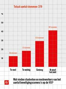 Volgens de Facilitaire Campus Orga nisatie (FCO) zet de VU inderdaad in op meerdere maatregelen. ‘We maken bij voorkeur gebruik van onze gastda mes en bewakers. Maar de campus is te groot voor volledig overzicht met alleen surveillance’, schrijft FCO in een reactie. Oftewel: de VU heeft camerabe waking nodig. Maar wat gebeurt er precies met de bewakingsbeelden? Volgens het Reglement Cameratoezicht van de VU worden de beelden maximaal 10 dagen bewaard – flink korter dan de richtlijn van 4 weken van de Autoriteit Persoonsgegevens. Over het terugkij ken van de beelden bestaan duide lijke afspraken, schrijft FCO. ‘Als we meldingen krijgen van incidenten of als iemand aangifte doet van diefstal of geweld, dan kan alleen een selecte groep mensen de beelden terugkijken. Daarom is het zaak incidenten zo snel mogelijk te melden, zodat we kunnen achterhalen of er camerabeelden zijn die moeten worden opgeslagen.’