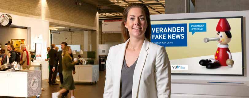 Hoe waren die eerste indrukken? “Zelf heb ik in Leiden gestudeerd. De VU ziet er heel anders uit qua architec tuur en ze ligt buiten de stad. Ik moest wennen aan het liftensysteem en de lokalen die eerder kamers zijn. Leiden is klein, knus en de faculteiten zijn verspreid over de stad. Aan dit Ameri kaanse idee van een campus moest ik wel wennen.”