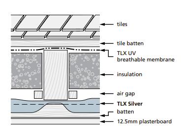 0.15 TLX TLX Gold counter battened with 20mm unventilated air cavity 160mm Foil Board (400mm centres) or 140mm Foil Board (600mm centres)