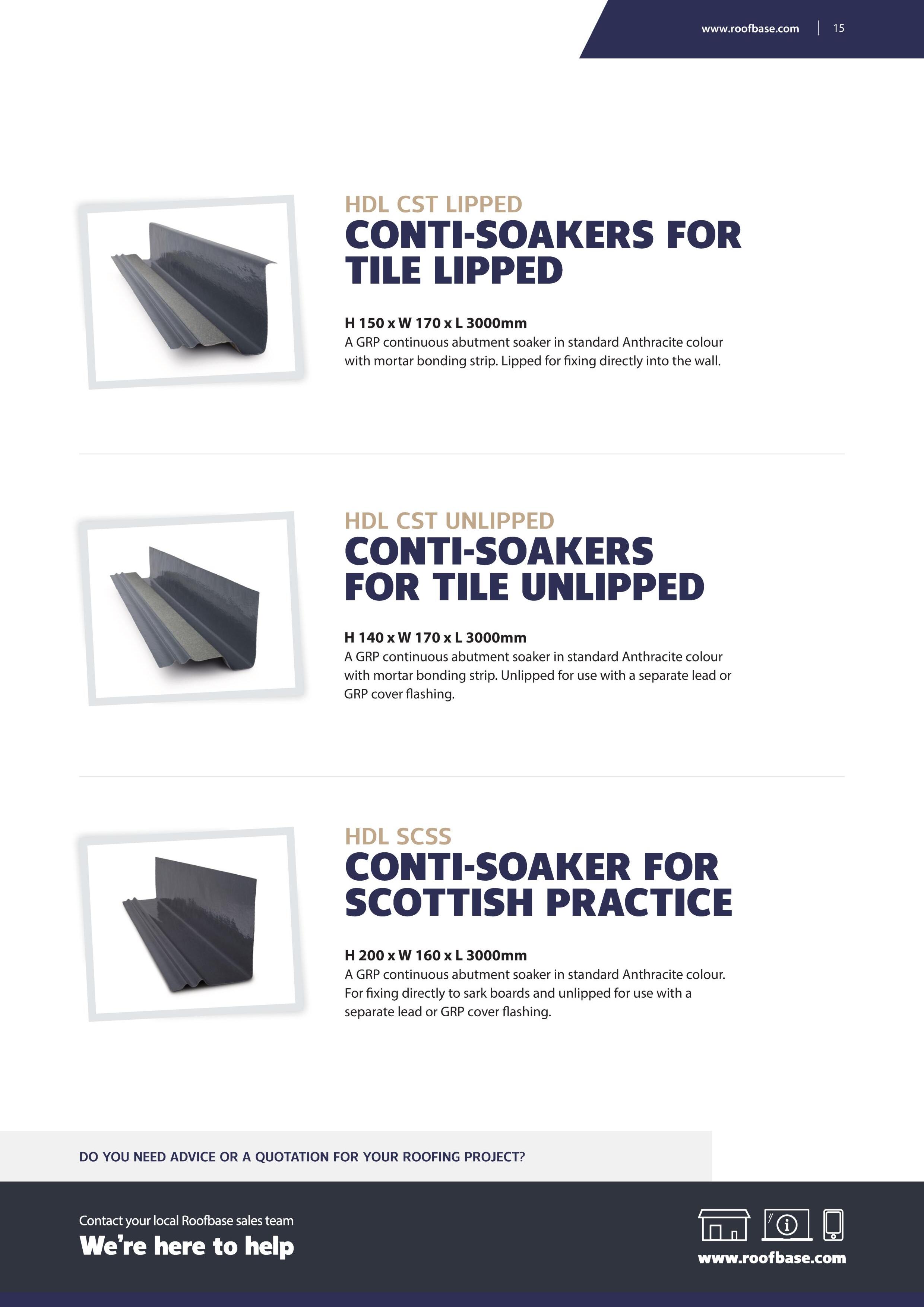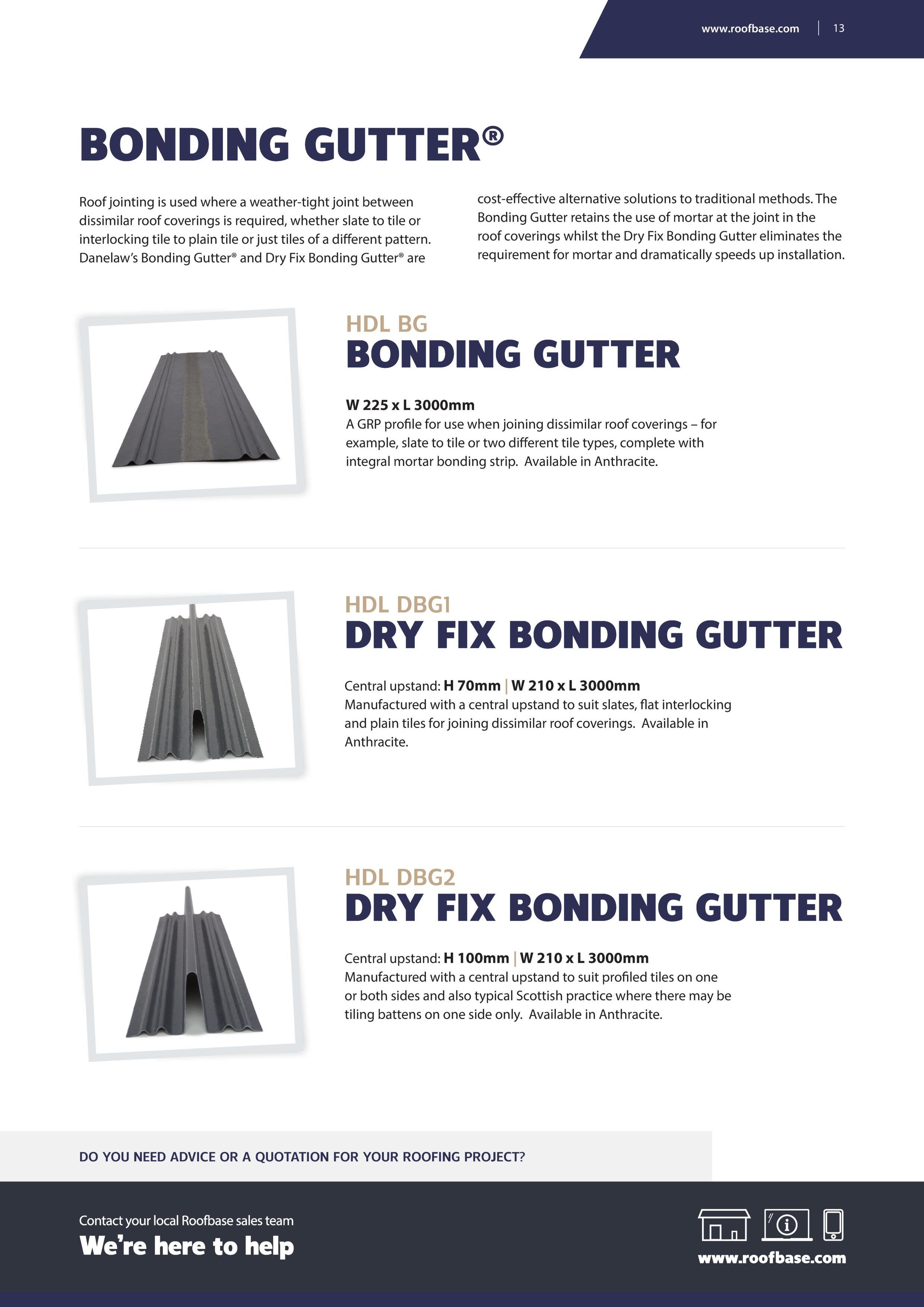 soakers/Conti-Soakers and both mortared, Dry Fix Bonding Gutters® and continuous slate verges all made from Glass Reinforced Polyester (GRP), making them superior to plastic alternatives and an ideal lead replacement solution.