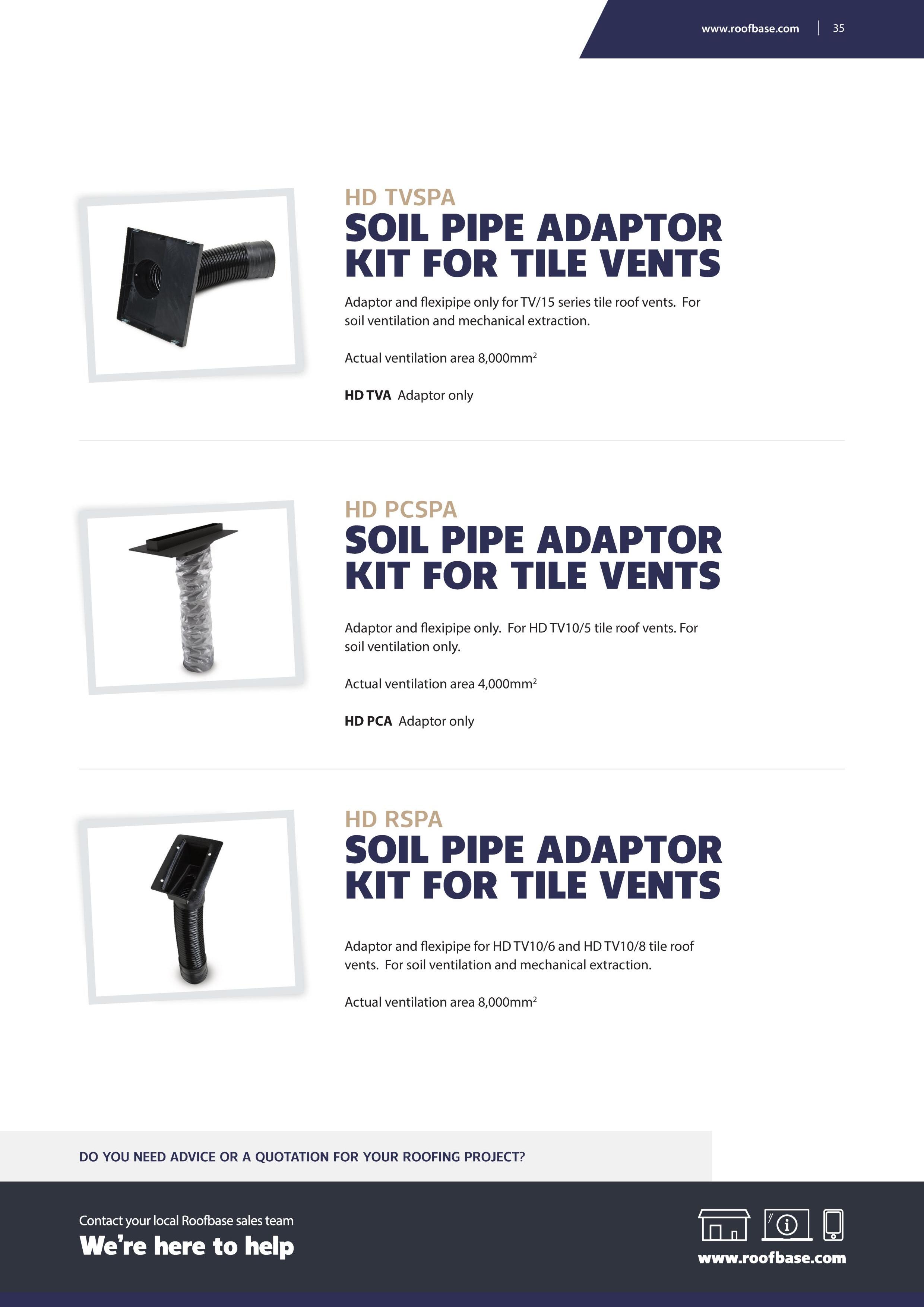Connects standard 110mm pipework to the HD TV10/9 and HD TV10/10 vents.