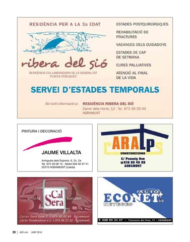 JAUME VILLALTA Avinguda dels Esports, 6, 2n, 2a Tel. 973 39 08 10 - Mòbil 626 92 97 51 25310 AGRAMUNT (Lleida)