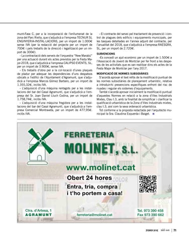 www.molinet.cat Obert 24 hores Entra, tria, compra i t’ho portem a casa! Ctra. d’Artesa, 1 AGRAMUNT