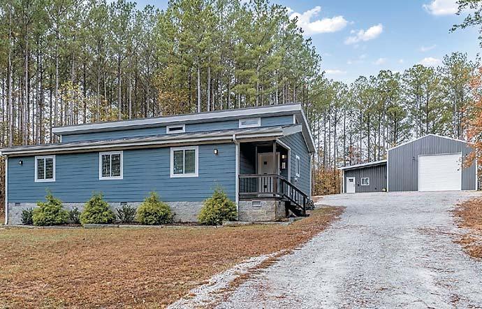 This southern beauty with rocking chair front porch on 6.67 Acres is a 3-bedroom 2 bath with a traditional entry foyer, formal dining room and sunroom that can be an extra den or office. And it has an eat-in kitchen. All stainless-steel appliances convey. The primary bathroom has been upgraded in addition to the kitchen and laundry room. There's room for your furry friends with a fully fenced in back yard.