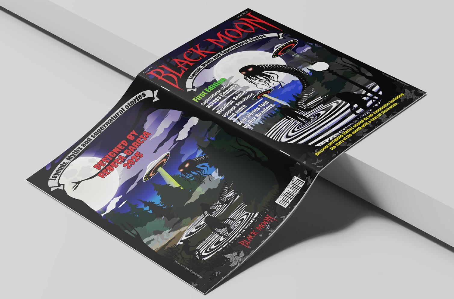 In many cases, such as on the cover of this edition, the logo is presented alone, without the illustration of the moon. This is because the cover includes several elements, and in order to maintain the visual balance of the magazine, only the “Black Moon” lettering is used. These can be implemented in any of the authorized colors from the palette, with the aim of contrasting appropriately with the various backgrounds used throughout the magazine.