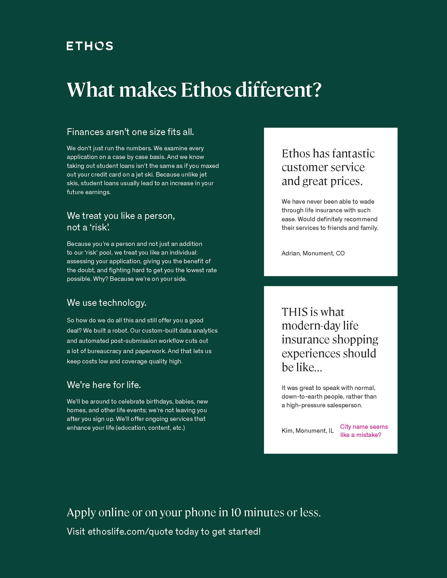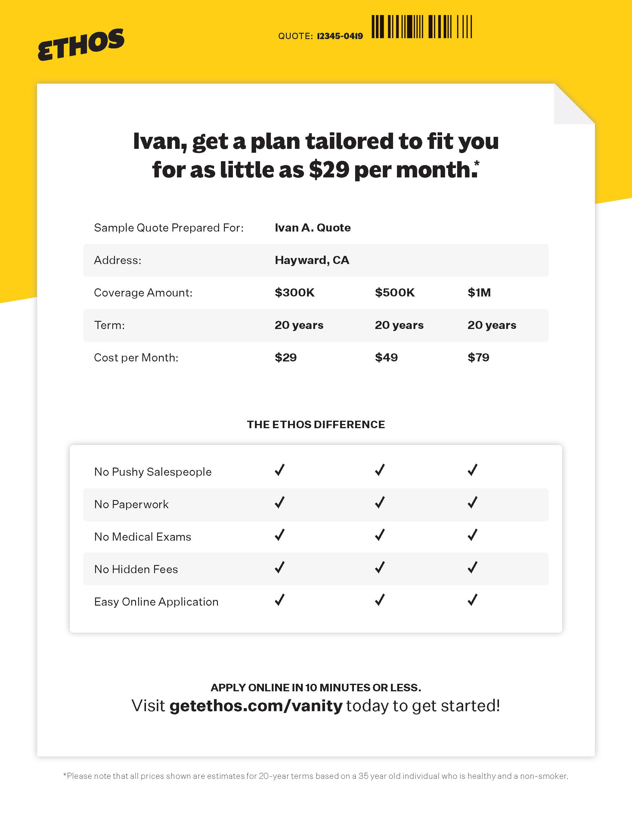 Ethos Direct Mail: Pakage 1 – Outer envelopeEthos Direct Mail: Pakage 2– Outer envelope front and back