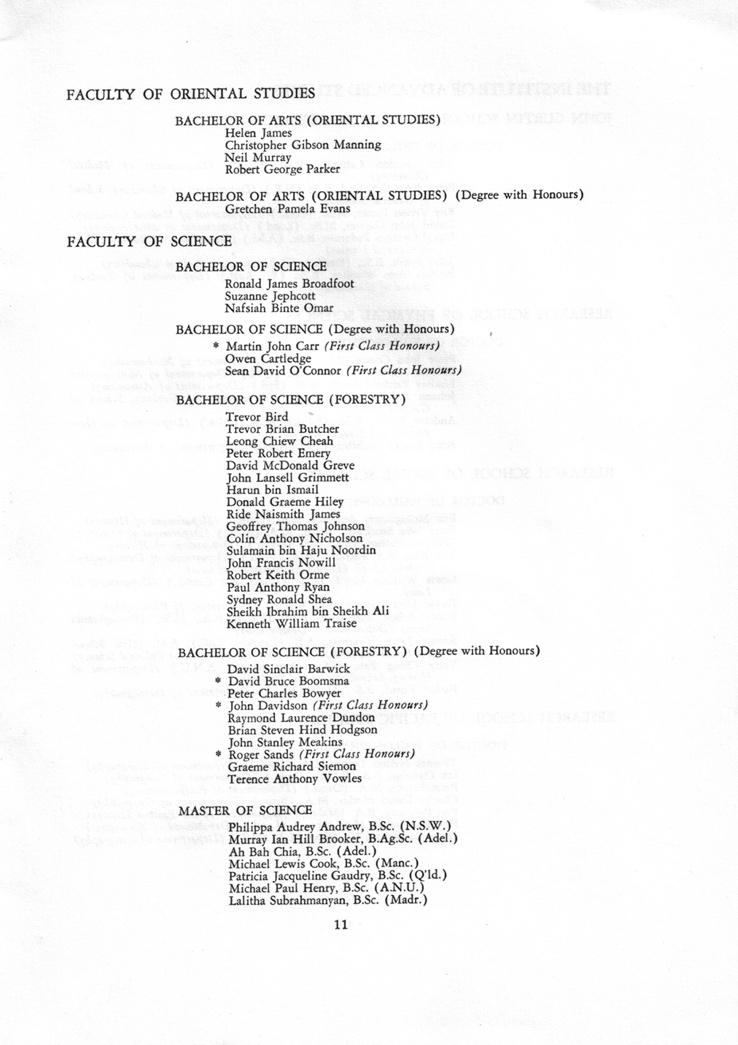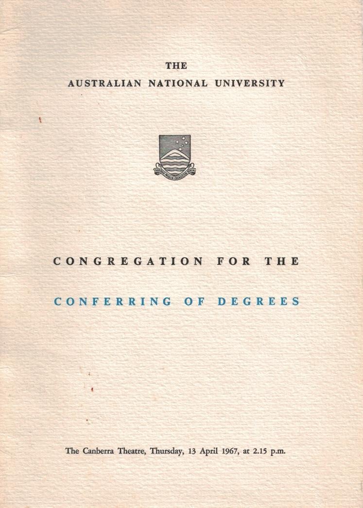 Of note in the same proceedings, UNE Bachelor of Science in Forestry Degrees were conferred on three overseas forestry students who had completed studies at the Australian Forestry School in 1964: O Faleye, G Singh and P Kio. (See lists in the proceedings booklet reproduced here on the next page).