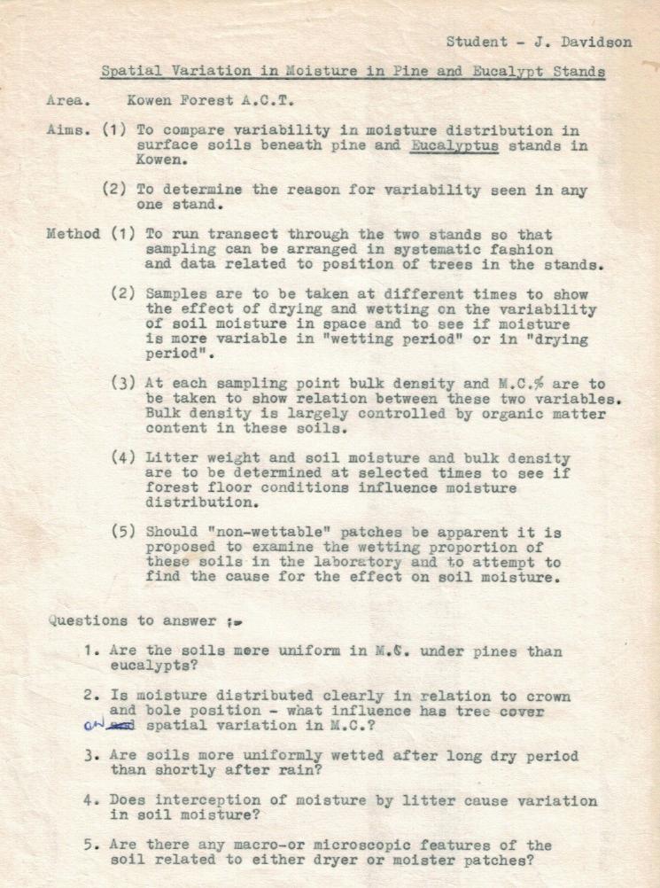 In the absence of teaching accommodation on the main ANU campus, lecture and laboratory classes were still held in the Forestry School buildings in Yarralumla. There was a fleet of Commonwealth owned and registered VW combi-vans for transport of students on excursions.