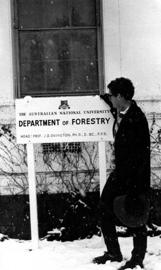 A Professor and Head of the ANU Department of Forestry had been appointed (Professor J D Ovington PhD DSc FFS), taking over from Mr K P McGrath, the last Principal of the Australian Forestry School. New staff appointments had been made, including Dr R Florence (Silviculture), Dr M Tanton, and Dr E Bachelard. Forestry School lecturers transferred to the ANU included Dr W Heather (Wood Structure and Identification), Mr A Brown (Foundations of Silviculture), Mr N Hall (Engineering, Harvesting, Transport, Photogrammetry), Mr K P McGrath (Forest Management, Economics, Policy), Mr L T Carron (Mensuration, Statistics), Mr A G McArthur (Fire Control) and Mr C D Hamilton (Soils, Dendrology).