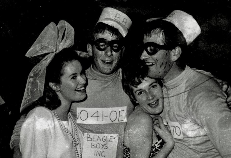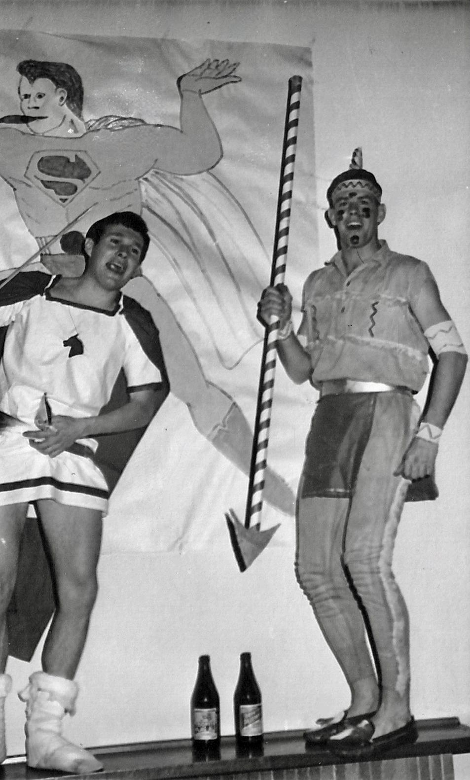Among the several social functions held in Forestry House was the annual Fancy Dress Ball. This one was in 1965. A great deal of effort was put into decorations and costumes. On the next page a close inspection will find Paul Ryan, Chris Borough, Rod Holesgrove (PNG Cadets) and Les Carron (Staff)!