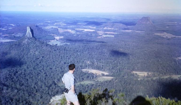 Gloria and I spent our honeymoon on a driving and camping trip from Armidale to Brisbane, then north up the Queensland coast as far as Rockhampton and return. A heavy 3 x 3 m canvas tent, wood poles, pegs etc. were carried in the car boot along with a portable gas stove and a blow-up bed (no fancy lightweight tents and camping equipment in those days!).