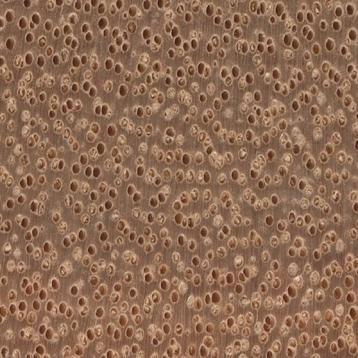 CCA will only diffuse a short distance in a lateral direction. It follows that a species with relatively large, close together and uniformly distributed vessels are the best candidates. Young Kamarere poles fitted these requirements. A cross-section of Kamarere wood is shown here about 4x natural size showing the relatively large, close together and uniformly distributed vessels.